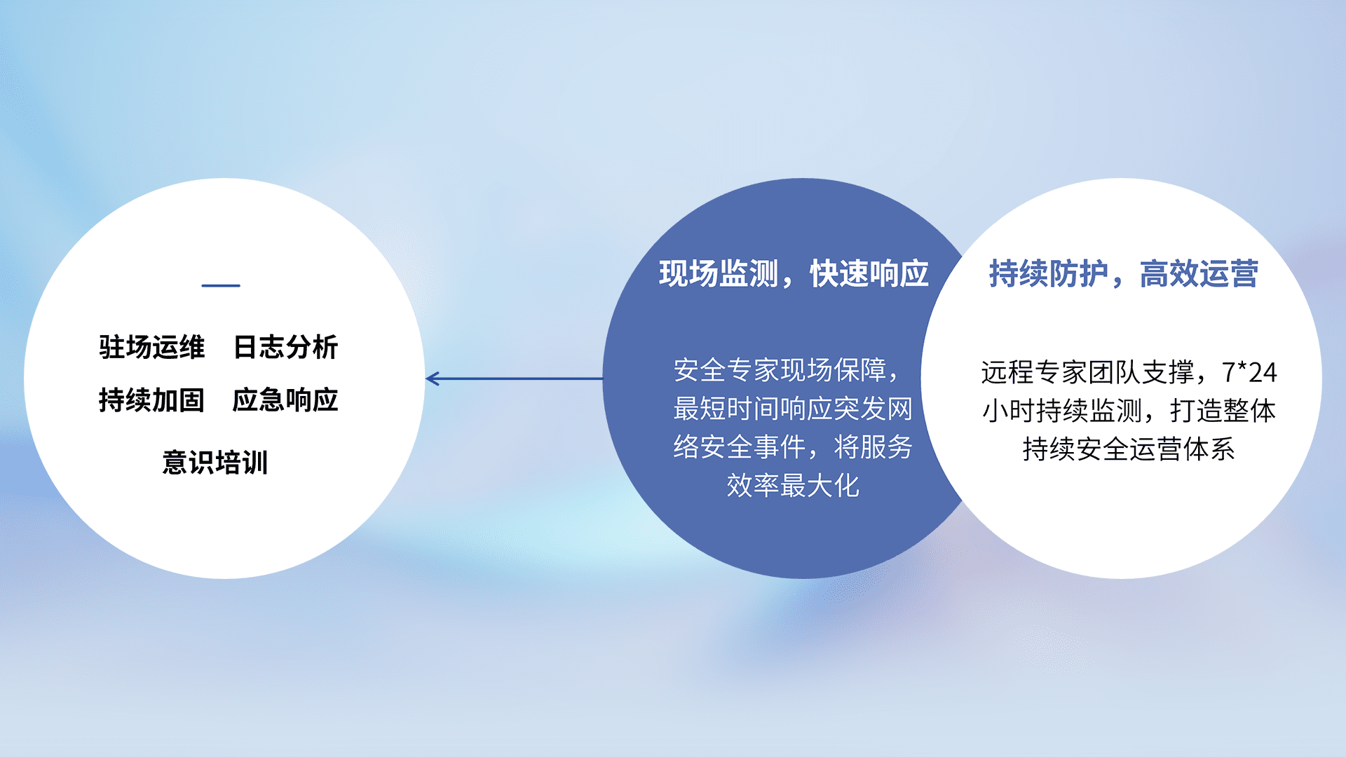 7X24小时持续监测安全事件,保持安全策略有效性,降低资产脆弱性风险,,,精准拦截黑客攻击,,,减少被黑客利用的机会,,,,第一时间遏制,,,,降低损失。。。